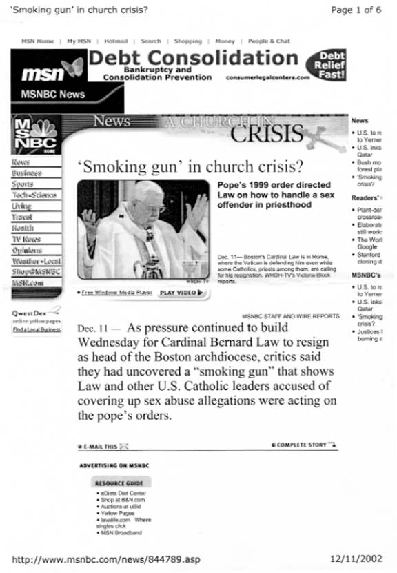 Pope’s 1999 order directed Law on how to handle a sex offender in priesthood.” The article explained the ‘smoking gun’